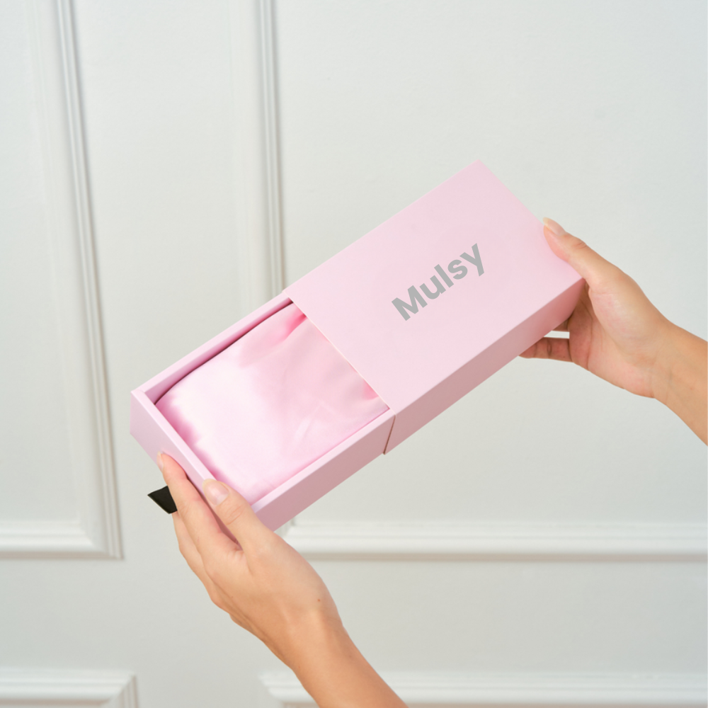 Your Mulsy bonnet comes beautifully packaged in a premium pink drawer box, making every order feel like a self-care gift. From the silky fabric to the thoughtful presentation, everything is crafted to make your hair-care routine feel luxurious.